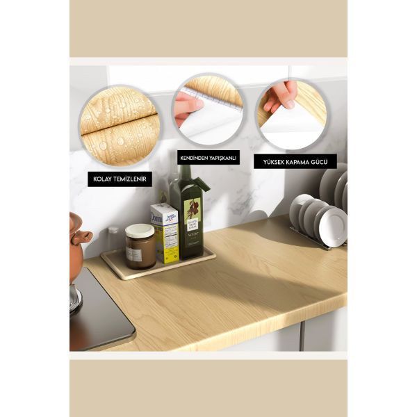 AHŞAP GÖRÜNÜMLÜ KENDİNDEN YAPIŞKANLI KAPLAMA FOLYOSU 5 METRE Ürün Özellikleri Mutfak,