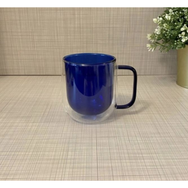 1 Adet Çift Cidarlı Cam Kupa Lacivert Renk