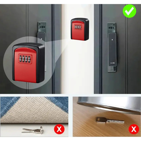 Kırmızı şifreli anahtar ve eşya saklama güvenlik kasası, ev, yazlık, ofis veya Airbnb dairelerinde güvenli anahtar teslimatı için tasarlanmıştır. 10 cm x 7 cm ölçülerinde ve 3,5 cm derinliğe sahip olan bu kasa, dört haneli şifreli mekanizması ile binlerce farklı kombinasyon seçeneği sunar. Sert plastik malzemeden üretilmiş olup, paslanmaz yapısıyla zorlu hava koşullarına karşı dayanıklıdır. Şifre değiştirme özelliği sayesinde güvenliğinizi kolayca güncelleyebilirsiniz. Şifre belirlemek ve değiştirmek için kasa açıkken şifre pimini B konumuna getirip şifreyi belirleyin pimi A konumuna getirdiğinizde artık yeni şifre geçerli olacaktır.Anahtarınızı içine koyarak güvenle saklayabilir, şifreyi bilen kişilerin kolayca erişmesine imkan tanıyabilirsiniz. Özellikle dış mekanlarda pratik kullanım imkânı sağlar.