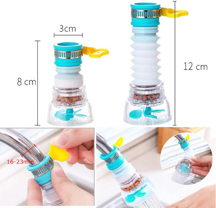 Musluk başlığı yumuşak hortum sayesinde uzatılabilir ve suyu hedeflenen yöne boşaltmak için 360 derece döndürülebilir. Böylece mutfak lavabolarının temizliği kolaylaşır ve temizlik alanı yayılır.Duş çıkışlı musluk püskürtme başlığı su akışının darbesini azaltır. Su sıçramasını önler ve %30 - %70 su tasarrufu sağlar.Musluk filtresi aktif mineral taşlar içerir. İnciler su temizliği için kullanılır ve bakterilere güçlü bir etkisi vardır. 16 – 23 mm çaplı musluğa uyar. Hortum kelepçesi ile kolayca sabitlenir, sıkı ve kaymaz. Hem sıcak hem de soğuk su kabul edilebilir.Renk: MAVİ ,YEŞİL,PEMBESTOK DURUMUNA GÖRE KARIŞIK RENK GÖNDERİLECEKTİR
