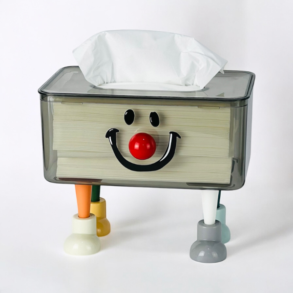 SEVİMLİ PEÇETELİKÜrün ÖzellikleriSevimli peçetelik, eğlenceli tasarımı ve şirin yüz ifadesiyle bulunduğu ortama neşe katar. Küçük kağıt peçeteleri düzenli bir şekilde saklamak için ideal olup, üst kısmında peçeteleri koymak için geniş bir alan bulunur. Alt kısmında ise renkli ayaklar yer alarak tasarıma hareketlilik kazandırır. Şeffaf plastik malzemeden üretilmiş olup, yüzü ve ayakları renkli plastik bileşenlerden oluşur. Evde, ofiste veya çocuk odalarında kullanılabilecek dekoratif ve fonksiyonel bir üründür. Peçeteleri pratik bir şekilde almayı sağlar ve aynı zamanda eğlenceli bir obje olarak dikkat çeker.Paket İçeriği1 adet Sevimli Peçetelik