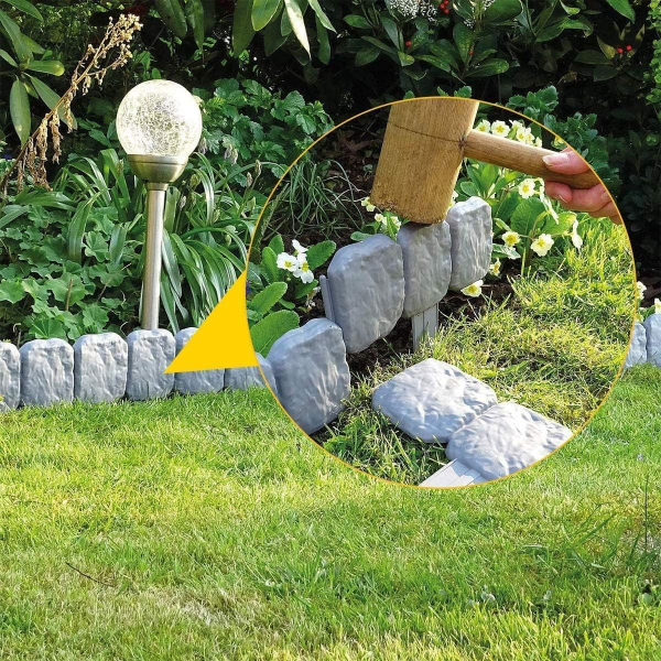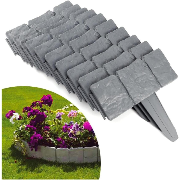 Taş görünümlü bahçe çiti, dış mekan dekorasyonunda doğal taş estetiğini yansıtmak isteyenler için ideal bir çözümdür. Ürün, birbirine geçmeli tasarımı sayesinde kolay montaj imkanı sunar ve herhangi bir özel ekipmana ihtiyaç duymadan çekiç yardımıyla kısa sürede yerleştirilebilir. Kaliteli plastik malzemeden üretilmiş olup, hava koşullarına karşı dayanıklıdır ve uzun ömürlü kullanım sağlar. Parça başı ölçüleri 24.5 cm genişlik, 10 cm yükseklik ve 13 cm gömülebilir ayak uzunluğudur. Bahçe sınırları belirleme, çiçeklik çevreleme veya peyzaj düzenlemesi gibi farklı alanlarda estetik ve düzenleyici bir işlev görür. Taş dokulu yüzeyi sayesinde hem doğal bir görünüm kazandırır hem de dekoratif şıklık sağlar. Paket içerisinde 3 adet çit vardır.
